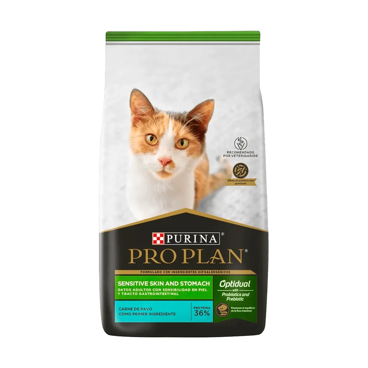 Formulado con carne de pavo como primer ingrediente, fuente de proteína alternativa de alta calidad, ideal para gatos sensibles. Incluye la tecnología exclusiva Optidual, que combina prebiótico y probióticos vivos garantizados que contribuyen juntos a la salud del sistema digestivo.