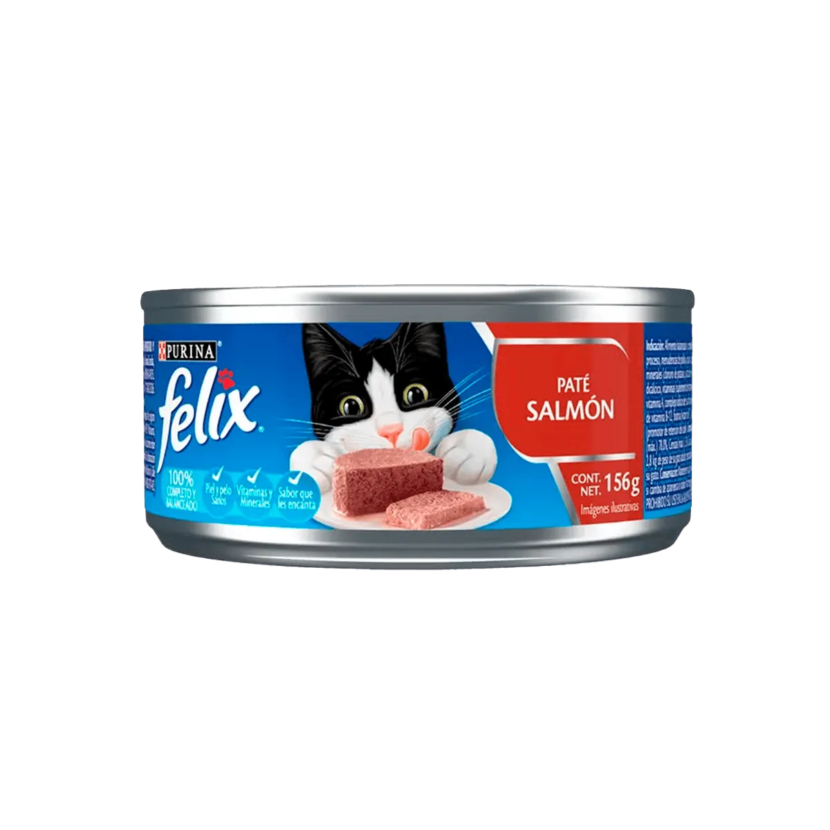 Alimento balanceado y completo húmedo para gatos adultos de todas las razas FELIX®. Paté salmón con una suave y agradable textura en formato lata.